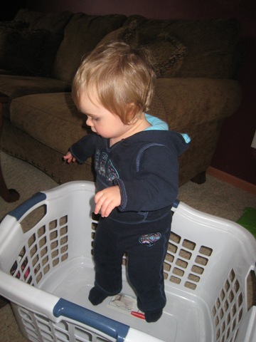 Mommy put me in Jail this afternoon. She said, "I'm tired of you throwing the stuff I just folded. Into jail you go." My jail was the laundry basket. It was kind of fun.